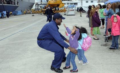 Keywords: US Navy 100514-N-7478G-135 Information Systems Technician 1st Class Melvin McCullough greets his daughters during the U.S. 7th Fleet command ship USS Blue Ridge (LCC 19) homecoming.jpg en YOKOSUKA Japan May 14 2010 Information Systems Technician 1st Class Melvin McCullough greets his daughters during the U S 7th Fleet command ship USS Blue Ridge LCC 19 homecoming Blue Ridge returned from a two-deployment with port visits in Busan Republic of Korea; Hong Kong; Kota Kinabalu Malaysia; Jakarta Indonesia; Pattaya Thailand; Hakata Japan; and Vladivostok Russia U S Navy photo by Mass Communication Specialist 2nd Class Cynthia Griggs/Released 2010-05-14 100514-N-7478G-135 Navy http //www navy mil/view_image asp id 85458 U S Navy photo by Mass Communication Specialist 2nd Class Cynthia Griggs PD-USGov-Military-Navy Aboard USS Blue Ridge LCC-19 |