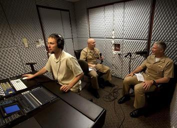 | Keywords: US Navy 100514-N-7227H-012 Rear Adm. Craig Faller and Senior Chief Mass Communication Specialist Tom Jones conduct sound checks as Rafal Dziedziniewicz adjusts the recording levels before beginning a podcast.jpg en GREAT LAKES Ill May 14 2010 Rear Adm Craig Faller right commander of Navy Recruiting Command NRC and Senior Chief Mass Communication Specialist Tom Jones conduct sound checks as Rafal Dziedziniewicz adjusts the recording levels before beginning a podcast The NRC podcasts are posted on Facebook and sent to all the Navy Recruiting Districts across the country to disseminate information on what's happening in Navy recruiting U S Navy photo by Mass Communication Specialist 2nd Class Joshua Hammond/Released 2010-05-14 100514-N-7227H-012 Navy http //www navy mil/view_image asp id 85567 U S Navy photo by Mass Communication Specialist 2nd Class Joshua Hammond PD-USGov-Military-Navy Naval Station Great Lakes Mass Communication Specialist Podcasting studios Yamaha DM1000 Audio signal processors Craig S Faller |
