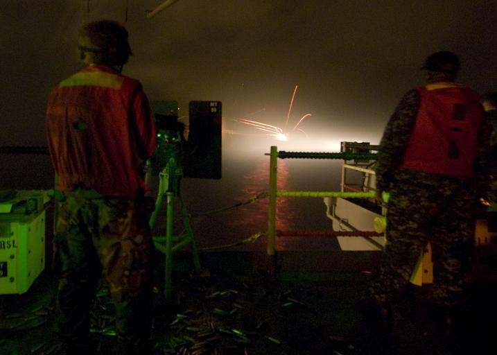 | Keywords: US Navy 100603-N-2757S-007 Airman Morgan Lindsey from Bowling Green, Ky. fires training rounds from a M2HB .50 caliber machine gun during a live-fire exercise aboard the aircraft carrier USS George Washington (CVN 73).jpg  en EAST CHINA SEA June 3 2010 Airman Morgan Lindsey from Bowling Green Ky fires training rounds from a M2HB 50 caliber machine gun during a live-fire exercise aboard the aircraft carrier USS George Washington CVN 73 George Washington is underway from its permanently forward-deployed port at Commander Fleet Activities Yokosuka supporting security and stability in the western Pacific Ocean U S Navy photo by Mass Communication Specialist 3rd Class Jeffrey Stewart/Released 2010-06-03 100603-N-2757S-007 Navy http //www navy mil/view_image asp id 86669 U S Navy photo by Mass Communication Specialist 3rd Class Jeffrey Stewart PD-USGov-Military-Navy Aboard USS George Washington CVN-73 Browning M2 of the US Navy Tracers Weapon training Military activities at night |