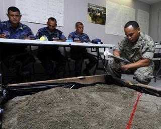 Keywords: US Navy 100615-N-9643W-180 Marine Corps Sgt. Juan Martinez prepares a 3D-model terrain for members of the Nicaraguan military during a subject matter expert exchange.jpg en CORINTO Nicaragua June 15 2010 Marine Corps Sgt Juan Martinez deployed aboard High Speed Vessel Swift HSV 2 prepares a 3D-model terrain for members of the Nicaraguan military during a subject matter expert exchange Swift is deployed supporting Southern Partnership Station 2010 an annual deployment of U S military training teams to the U S Southern Command area of responsibility in the Caribbean and Latin America U S Navy photo by Mass Communication Specialist 1st Class Kim Williams/Released 2010-06-15 100615-N-9643W-180 Navy http //www navy mil/view_image asp id 87144 U S Navy photo by Mass Communication Specialist 1st Class Kim Williams PD-USGov-Military-Navy Corinto Nicaragua Images from US Navy location CORINTO Nicaragua Southern Partnership Station 2010 Military of Nicaragua |
