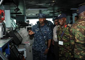 Keywords: US Navy 100629-N-4236E-592 Distinguished visitors from U.S. Africa Command and Combined Joint Task Force, Horn of Africa learn about bridge operations during a tour of the Nimitz-class aircraft carrier USS Dwight D. Eisenhower.jpg en GULF OF ADEN June 29 2010 Distinguished visitors from U S Africa Command and Combined Joint Task Force Horn of Africa learn about bridge operations during a tour of the Nimitz-class aircraft carrier USS Dwight D Eisenhower CVN 69 The Eisenhower Carrier Strike Group is deployed as a part of an on-going rotation of forward-deployed forces to support maritime security operations in the U S 5th Fleet area of responsibility U S Navy photo by Mass Communication Specialist 3rd Class Chad R Erdmann/Released 2010-06-29 100629-N-4236E-592 Navy http //www navy mil/view_image asp id 87924 U S Navy photo by Mass Communication Specialist 3rd Class Chad R Erdmann PD-USGov-Military-Navy Aboard USS Dwight D Eisenhower CVN-69 United States Africa Command |