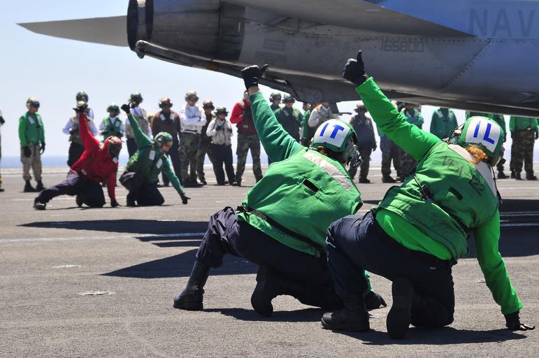 Keywords: US Navy 100712-N-5528G-292 Sailors signal all clear before jet launch.jpg en PACIFIC OCEAN July 12 2010 Sailors assigned to the aircraft carrier USS Carl Vinson CVN 70 signal the all clear sign to the pilot of an F/A-18 Super Hornet before it is catapulted off the flight deck Carl Vinson is underway conducting local operations off the coast of Southern California U S Navy photo by Mass Communication Specialist 3rd Class Patrick Green/Released 2010-07-12 100712-N-5528G-292 Navy http //www navy mil/view_image asp id 88608 U S Navy photo by Mass Communication Specialist 3rd Class Patrick Green PD-USGov-Military-Navy Aboard USS Carl Vinson CVN-70 |