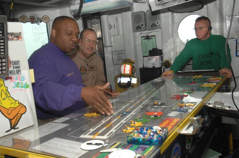 | Keywords: US Navy 100728-N-6582H-035 Air Force Maj. Gen. Hank C. Morrow listens to a brief by Lt. Cmdr. Randy Moss in flight deck control aboard USS Harry S. Truman (CVN 75).jpg en U S 5TH FLEET AREA OF RESPONSIBILITY July 28 2010 Air Force Maj Gen Hank C Morrow senior U S Defense Attache in Abu Dhabi United Arab Emirates listens to a brief by the ship's handler Lt Cmdr Randy Moss in flight deck control aboard the aircraft carrier USS Harry S Truman CVN 75 during a one-day embark The Harry S Truman Carrier Strike Group is deployed supporting maritime security operations and theater security cooperation efforts in the U S 5th Fleet area of responsibility U S Navy photo by Mass Communication Specialist 3rd Class Jared Hall/Released 2010-07-28 100728-N-6582H-035 Navy http //www navy mil/view_image asp id 89653 U S Navy photo by Mass Communication Specialist 3rd Class Jared Hall PD-USGov-Military-Navy Aboard USS Harry S Truman CVN-75 Ouija boards aircraft carrier |