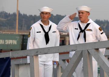 | Keywords: US Navy 100805-N-9761H-133 A Sea Cadet salutes the national ensign from the brow of the amphibious transport dock ship USS Green Bay (LPD 20).jpg  en SEATTLE Aug 5 2010 A Sea Cadet salutes the national ensign from the brow of the amphibious transport dock ship USS Green Bay LPD 20 during Vice Adm Richard Hunt's U S 3rd Fleet reception aboard the ship during Seattle's Sea Fair Fleet Week The reception was held to thank the port community for their efforts in making Fleet Week possible Green Bay hosted more than 140 Sea Cadets and Navy Junior ROTC Cadets during Fleet Week U S Navy photo by Mass Communication Specialist 2nd Class Jeff Hopkins/Released 2010-08-05 100805-N-9761H-133 Navy http //www navy mil/view_image asp id 90353 U S Navy photo by Mass Communication Specialist 2nd Class Jeff Hopkins PD-USGov-Military-Navy Aboard USS Green Bay LPD-20 |