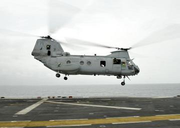 Keywords: US Navy 100813-N-1226D-066 A CH-46 Sea Knight helicopter launches from USS Peleliu (LHA 5).jpg en ARABIAN SEA Aug 13 2010 A CH-46 Sea Knight helicopter assigned to Helicopter Marine Medium Squadron HMM 165 Reinforced launches from the amphibious assault ship USS Peleliu LHA 5 The Peleliu Amphibious Ready Group is supporting the Pakistani government and military disaster relief efforts with heavy lift capabilities in flooded regions of Pakistan U S Navy photo by Mass Communication Specialist 3rd Class Omar A Dominquez/Released 2010-08-13 100813-N-1226D-066 Navy http //www navy mil/view_image asp id 90255 U S Navy photo by Mass Communication Specialist 3rd Class Omar A Dominquez PD-USGov-Military-Navy Aboard USS Peleliu LHA-5 2010 Pakistan flood relief efforts Helicopters facing right CH-46 Sea Knight |
