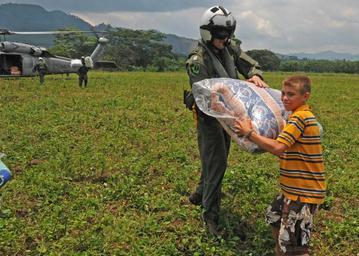 | Keywords: US Navy 100815-N-3237D-246 A Colombian child helps Lt. Steve Miller unload mattresses from an MH-60S Sea Hawk helicopter.jpg  en DON GABRIEL Colombia Aug 15 2010 A Colombian child helps Lt Steve Miller unload mattresses from an MH-60S Sea Hawk helicopter Miller and his squadron are embarked aboard the multi-purpose amphibious assault ship USS Iwo Jima LHD 7 and are off the coast of Colombia conducting the Continuing Promise 2010 humanitarian civic assistance mission The assigned medical and engineering staff embarked aboard Iwo Jima are working with partner nation teams to provide medical dental veterinary and engineering assistance to eight different nations U S Navy photo by Mass Communication Specialist 3rd Class Morgan E Dial/Released 2010-08-15 100815-N-3237D-246 Navy http //www navy mil/view_image asp id 90574 U S Navy photo by Mass Communication Specialist 3rd Class Morgan E Dial PD-USGov-Military-Navy Aboard USS Iwo Jima LHD-7 |