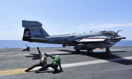 Keywords: US Navy 100816-N-0569K-005 Sailors give flight deck personnel and pilots the all-clear signal to launch an EA-6B Prowler aboard USS Enterprise (CVN 65).jpg en ATLANTIC OCEAN Aug 16 2010 Sailors assigned to the aircraft carrier USS Enterprise CVN 65 give flight deck personnel and pilots the all-clear signal to launch an EA-6B Prowler assigned to the Rooks of Electronic Attack Squadron VAQ 137 Enterprise is on a scheduled underway for its tailored ship's training availability and is making preparations for its 21st deployment U S Navy photo by Mass Communication Specialist Seaman Apprentice Jared M King/Released 2010-08-16 100816-N-0569K-005 Navy http //www navy mil/view_image asp id 90462 U S Navy photo by Mass Communication Specialist Seaman Apprentice Jared M King PD-USGov-Military-Navy Aboard USS Enterprise CVN-65 Electronic Attack Squadron 137 United States Navy |