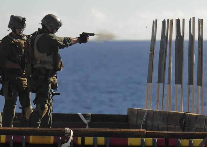 | Keywords: US Navy 100914-N-9950J-395 Marines assigned to the 31st Marine Expeditionary Unit (31st MEU) conduct a live-fire training exercise on the flight de.jpg en PHILIPPINE SEA Sept 14 2010 Marines assigned to the 31st Marine Expeditionary Unit 31st MEU conduct a live-fire training exercise on the flight deck of the forward-deployed amphibious assault ship USS Essex LHD 2 Essex is part of the forward-deployed Essex Amphibious Ready Group and is participating in Valiant Shield 2010 an integrated joint training exercise designed to enhance interoperability between U S forces U S Navy photo by Mass Communication Specialist 2nd Class Greg Johnson/Released 2010-09-14 100914-N-9950J-395 Navy http //www navy mil/view_image asp id 91691 U S Navy photo by Mass Communication Specialist 2nd Class Greg Johnson PD-USGov-Military-Navy Aboard USS Essex LHD-2 Cartridge ejection M9 pistol Valiant Shield 2010 31st Marine Expeditionary Unit Weapon training in the United States Marine Corps |