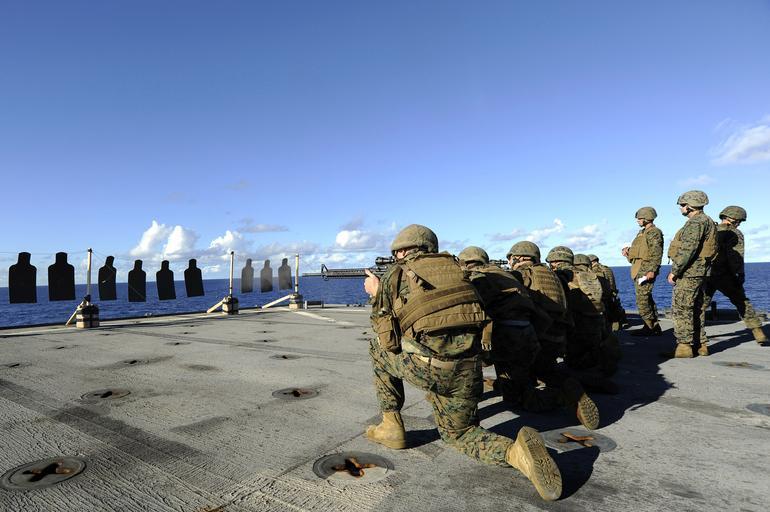 | Keywords: US Navy 100915-N-8335D-249 Marines conduct weapons exercise aboard USS Harpers Ferry.jpg en PHILIPPINE SEA Sept 15 2010 Marines from the 31st Marine Expeditionary Unit 31st MEU embarked aboard the amphibious dock landing ship USS Harpers Ferry LSD 49 practice shooting their M-14 carbines and M-16 rifles Harpers Ferry part of the permanently forward-deployed Essex Amphibious Ready Group ARG is on patrol in the western Pacific Ocean participating in Valiant Shield 2010 an integrated joint-training exercise designed to enhance interoperability between U S forces U S Navy photo by Mass Communication Specialist 1st Class Richard Doolin/Released 2010-09-15 100915-N-8335D-249 Navy http //www navy mil/view_image asp id 91779 U S Navy photo by Mass Communication Specialist 1st Class Richard Doolin PD-USGov-Military-Navy Aboard USS Harpers Ferry LSD-49 Valiant Shield 2010 31st Marine Expeditionary Unit Weapon training in the United States Marine Corps Advanced Combat Optical Gunsight on M16 rifle |