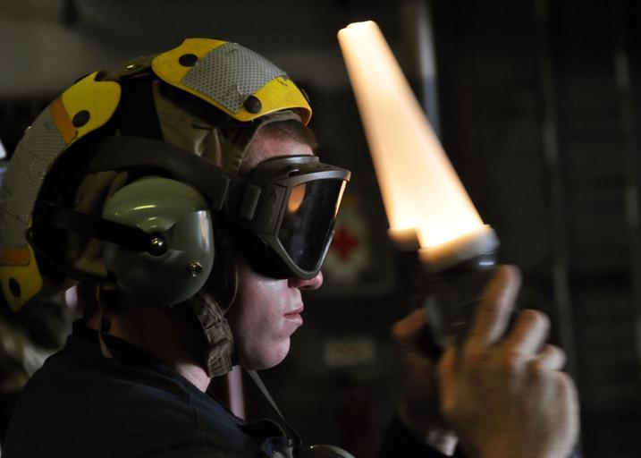 | Keywords: US Navy 100918-N-3620B-016 A Sailor guides a landing craft air cushion aboard USS Denver.jpg en PACIFIC OCEAN Sept 18 2010 Boatswain's Mate 2nd Class Jeffery Howard guides a landing craft air cushion LCAC into the well deck of the amphibious transport dock USS Denver LPD 9 Denver is part of the permanently forward-deployed Essex Amphibious Ready Group and is underway for a scheduled patrol in the western Pacific U S Navy photo by Mass Communication Specialist 3rd Class Bryan Blair/Released 2010-09-18 100918-N-3620B-016 Navy http //www navy mil/view_image asp id 91979 U S Navy photo by Mass Communication Specialist 3rd Class Bryan Blair PD-USGov-Military-Navy Aboard USS Denver LPD-9 People with safety earmuffs Marshalling wands |