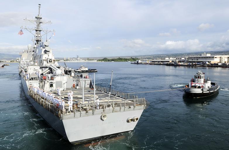 Keywords: US Navy 101130-N-7498L-026 A tugboat tows the guided-missile destroyer USS Paul Hamilton (DDG 60) as the ship departs Joint Base Pearl Harbor-Hicka.jpg en PEARL HARBOR Nov 30 2010 A tugboat tows the guided-missile destroyer USS Paul Hamilton DDG 60 as the ship departs Joint Base Pearl Harbor-Hickam for an independent deployment to the Middle East and western Pacific Ocean Paul Hamilton is deploying under the Middle Pacific Surface Combatant deployment concept in which Hawaii-based ships deploy to support operations in the U S 5th and 7th Fleet areas of responsibility U S Navy photo by Mass Communication Specialist 2nd Class Mark Logico/Released 2010-11-30 101130-N-7498L-026 Navy http //www navy mil/view_image asp id 94652 U S Navy photo by Mass Communication Specialist 2nd Class Mark Logico PD-USGov-Military-Navy USS Paul Hamilton DDG-60 |