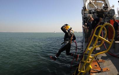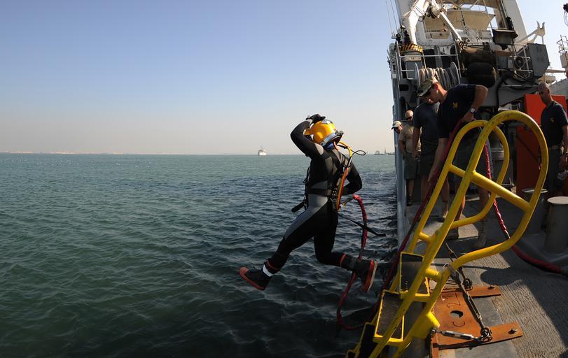 | Keywords: US Navy 101202-N-0413B-139 Navy Diver 2nd Class Malachi Greiner, assigned to Mobile Diving and Salvage Unit (MDSU) 2, steps off the deck of the Mil.jpg  en MANAMA Bahrain Dec 2 2010 Navy Diver 2nd Class Malachi Greiner assigned to Mobile Diving and Salvage Unit MDSU 2 steps off the deck of the Military Sealift Command fleet ocean tug USNS Catawba T-ATF 168 for a surface-supplied air dive MDSU-2 is deployed as part of Combined Task Group 56 1 supporting maritime security operations and theater security cooperation efforts in the U S 5th Fleet area of responsibility U S Navy photo by Mass Communication Specialist 1st Class Anderson Bomjardim/Released 2010-12-02 101202-N-0413B-139 Navy http //www navy mil/view_image asp id 94994 U S Navy photo by Mass Communication Specialist 1st Class Anderson Bomjardim PD-USGov-Military-Navy USNS Catawba T-ATF-168 United States Navy Divers Giant stride water entries |