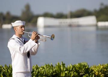 Keywords: US Navy 101207-N-5476H-204 Musician 2nd Class Bryan Parmann, assigned to the U.S. Pacific Fleet Band, plays Taps during a ceremony commemorating th.jpg en PEARL HARBOR Dec 7 2010 Musician 2nd Class Bryan Parmann assigned to the U S Pacific Fleet Band plays Taps during a ceremony commemorating the 69th anniversary of the attack on Pearl Harbor The National Park Service and the U S Navy hosted a memorial ceremony to dedicate the new 56 million Pearl Harbor Visitor Center at the World War II Valor in the Pacific National Monument formerly known as the USS Arizona Memorial Visitor Center U S Navy photo by Mass Communication Specialist 2nd Class Michael Hight/Released 2010-12-07 101207-N-5476H-204 Navy http //www navy mil/view_image asp id 95009 U S Navy photo by Mass Communication Specialist 2nd Class Michael Hight PD-USGov-Military-Navy 69th anniversary of Pearl Harbor attacks People with trumpets Taps bugle call |