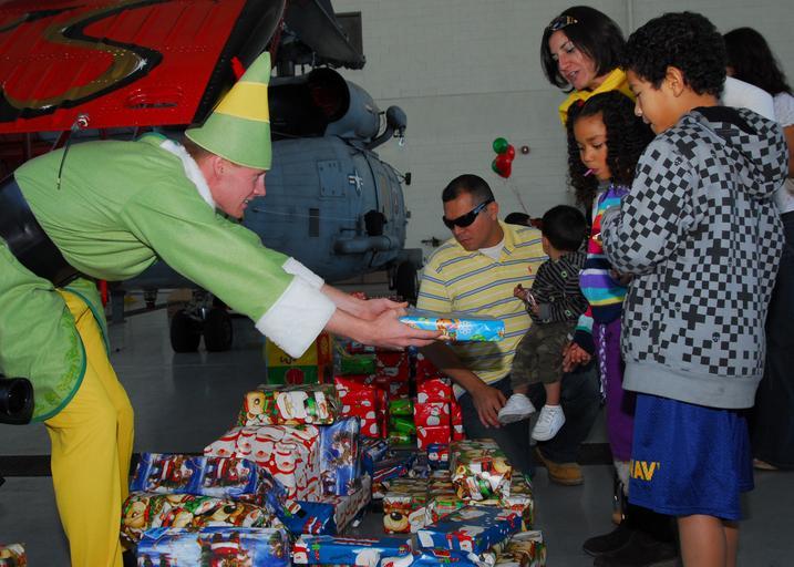 Keywords: US Navy 101211-N-0046R-126 Aviation Electronics Technician 1st Class George Hohnsbehn passes out gifts to the family members of Sailors during a ho.jpg en SAN DIEGO Dec 11 2010 Aviation Electronics Technician 1st Class George Hohnsbehn passes out gifts to the family members of Sailors assigned to Commander Helicopter Sea Combat Wing Pacific CHSCWP during a holiday party at Naval Air Station North Island The party gives Sailors the opportunity to celebrate the holiday season with their families U S Navy photo by Mass Communication Specialist 3rd Class Kristopher Regan/Released 2010-12-11 101211-N-0046R-126 Navy http //www navy mil/view_image asp id 95304 U S Navy photo by Mass Communication Specialist 3rd Class Kristopher Regan PD-USGov-Military-Navy Naval Air Station North Island in the 2010s Aviation Electronics Technician Christmas costumes |