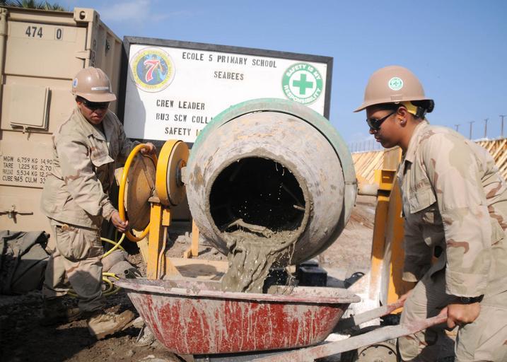 Keywords: US Navy 101211-N-4440L-025 Builder Constructionman Bianca Manzanero, left, and Builder Constructionman Haani Leah.jpg en DJIBOUTI Dec 11 2010 Builder Constructionman Bianca Manzanero left and Builder Constructionman Haani Leah both assigned to Naval Mobile Construction Battalion NMCB 74 Detail Horn of Africa rinse a mortar mixer used to mix sand cement lime and water to create stucco NMCB-74 Detail Horn of Africa is deployed to Combined Joint Task Force-Horn of Africa to assist in building partner nation capacity and promoting regional stability U S Navy photo by Mass Communication Specialist 2nd Class Michael Lindsey/Released 2010-12-11 101211-N-4440L-025 Navy http //www navy mil/view_image asp id 95353 U S Navy photo by Mass Communication Specialist 2nd Class Michael Lindsey PD-USGov-Military-Navy United States Navy images from Djibouti Cement mixers Wheelbarrows Women in the United States Navy Women with hard hats |