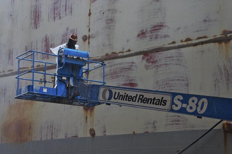Keywords: US Navy 101221-N-9643K-452 A NASSCO shipyard worker uses a lift to continue working on the hull of the amphibious assault ship USS Bonhomme Richar.jpg en SAN DIEGO Dec 21 2010 A NASSCO shipyard worker uses a lift to continue working on the hull of the amphibious assault ship USS Bonhomme Richard LHD 6 despite constant rain for several days Areas of California are under a state of emergency because of severe rains and flooding Bonhomme Richard is in dry dock for maintenance and upgrades U S Navy photo by Chief Mass Communication Specialist Joe Kane/Released 2010-12-21 101221-N-9643K-452 Navy http //www navy mil/view_image asp id 95720 U S Navy photo by Chief Mass Communication Specialist Joe Kane PD-USGov-Military-Navy Aboard USS Bonhomme Richard LHD-6 NASSCO floating dry dock Cherry pickers in the United States Photographs by Joseph Kane |
