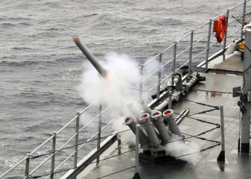| Keywords: US Navy 110131-N-1512O-001 An MK-214 seduction chaff canister is fired during a test exercise aboard USS Mount Whitney (LCC-JCC 20).jpg en MEDITERRANEAN SEA Jan 31 2011 An MK-214 seduction chaff canister is fired during a test exercise aboard the amphibious command ship USS Mount Whitney LCC/JCC 20 Mount Whitney is the U S 6th Fleet flagship homeported in Gaeta Italy and operates with a hybrid crew of U S Sailors and Military Sealift Command civil service mariners U S Navy photo by Mass Communication Specialist 2nd Class Stephen Oleksiak/Released 2011-01-31 110131-N-1512O-001 Navy http //www navy mil/view_image asp id 96961 U S Navy photo by Mass Communication Specialist 2nd Class Stephen Oleksiak PD-USGov-Military-Navy Aboard USS Mount Whitney LCC-20 Mark 36 Super Rapid Blooming Offboard Chaff |