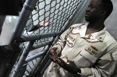 | Keywords: US Navy 110210-N-4936C-147 Shipâ^euro,^trade,s Serviceman 3rd Class Darold Johnsonbrown, a Joint Detention Group barber, speaks to a detainee about.jpg en GUANTANAMO BAY Cuba Feb 10 2011 Shipâ s Serviceman 3rd Class Darold Johnsonbrown a Joint Detention Group barber speaks to a detainee about trimming his beard in Camp VI Johnsonbrown is attached to the Navy Expeditionary Guard Battalion which provides a portion of the guard force inside the detention facilities U S Navy photo by Mass Communication Specialist 1st Class David P Coleman/Released 2011-02-10 110210-N-4936C-147 Navy http //www navy mil/view_image asp id 97572 U S Navy photo by Mass Communication Specialist 1st Class David P Coleman PD-USGov-Military-Navy Camp 6 Guantanamo 2010 at the Guantanamo Bay Naval Base Taken with NIKON D300S |