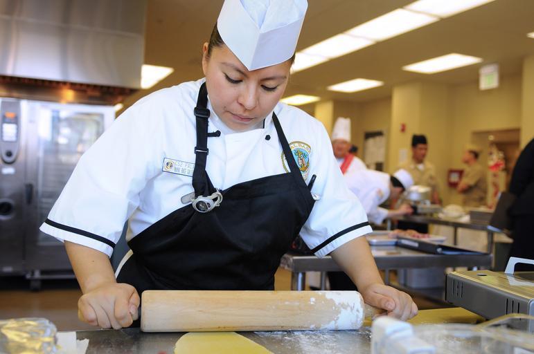| Keywords: US Navy 110301-N-1401J-017 ulinary Specialist 2nd Class Sophia Palafoxl rolls dough with a rolling pin during the 2011 Commander, Navy Region South.jpg en CORONADO Calif March 1 2011 Culinary Specialist 2nd Class Sophia Palafoxl assigned to the galley at Naval Base San Diego rolls dough with a rolling pin during the 2011 Commander Navy Region Southwest CNRSW Culinary Competition at Naval Amphibious Base Coronado CNRSW winners will go on to compete in the Commander Navy Installations Command Culinary Competition later this year in Washington D C U S Navy photo by Mass Communication Specialist 3rd Class Christopher S Johnson/Released 2011-03-01 110301-N-1401J-017 Navy http //www navy mil/view_image asp id 98069 U S Navy photo by Mass Communication Specialist 3rd Class Christopher S Johnson PD-USGov-Military-Navy Naval Amphibious Base Coronado People with rolling pins rolling dough Cooking competitions Side caps |