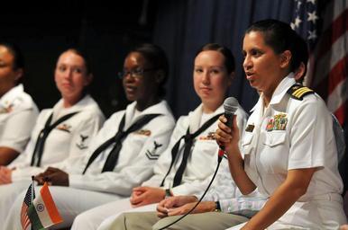 Keywords: US Navy 110317-N-9818V-445 Cmdr. Shanti Sethi answers questions from female students during an event to commemorate Women's History Month while in.jpg en CHENNAI India March 17 2011 Cmdr Shanti Sethi commanding officer of the Arleigh Burke-class guided-missile destroyer USS Decatur DDG 73 answers questions from female students during an event to commemorate Women's History Month while Decatur is in Chennai India for a port visit Sethi and eight female Sailors from Decatur participated in the event with students from various Chennai colleges and high schools Decator is on a deployment to the U S 7th Fleet area of responsibility U S Navy photo by Mass Communication Specialist 1st Class Jennifer A Villalovos/Released 2011-03-17 110317-N-9818V-445 Navy http //www navy mil/view_image asp id 98783 U S Navy photo by Mass Communication Specialist 1st Class Jennifer A Villalovos PD-USGov-Military-Navy USS Decatur DDG-73 Women's History Month Shanti Sethi |