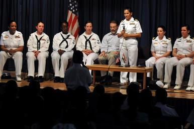 Keywords: US Navy 110317-N-9818V-557 Cmdr. Shanti Sethi, commanding officer of the Arleigh Burke-class guided-missile destroyer USS Decatur (DDG 73).jpg en CHENNAI India March 17 2011 Cmdr Shanti Sethi commanding officer of the Arleigh Burke-class guided-missile destroyer USS Decatur DDG 73 answers a question from a female student during an event to commemorate Women's History Month while Decatur is in Chennai India for a port visit Sethi and eight female Sailors from Decatur participated in the event with students from various Chennai colleges and high schools Decator is on a deployment to the U S 7th Fleet area of responsibility U S Navy photo by Mass Communication Specialist 1st Class Jennifer A Villalovos/Released 2011-03-17 110317-N-9818V-557 Navy http //www navy mil/view_image asp id 98767 U S Navy photo by Mass Communication Specialist 1st Class Jennifer A Villalovos PD-USGov-Military-Navy USS Decatur DDG-73 Shanti Sethi |