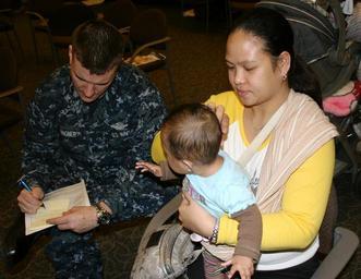 Keywords: US Navy 110321-N-8191S-001 Hospital Corpsman 2nd Class Jerry Wagner, left, patient administration operational forces liaison at Naval Hospital Brem.jpg en SEATTLE Wash March 21 2011 Hospital Corpsman 2nd Class Jerry Wagner left patient administration operational forces liaison at Naval Hospital Bremerton helps coordinate medical care for the family member of a Sailor and her six-month old daughter at Seattle Tacoma SEA-TAC International Airport Wagner and other Naval Hospital Bremerton staff members assisted the voluntary evacuees and SEA-TAC officials The military-chartered flight arrived from Naval Air Facility Atsugi with 154 passengers and 21 pets U S Navy photo by Douglas H Stutz/Released 2011-03-21 110321-N-8191S-001 Navy http //www navy mil/view_image asp id 98904 U S Navy photo by Douglas H Stutz PD-USGov-Military-Navy Images from US Navy location Seattle WA Hospital Corpsman |