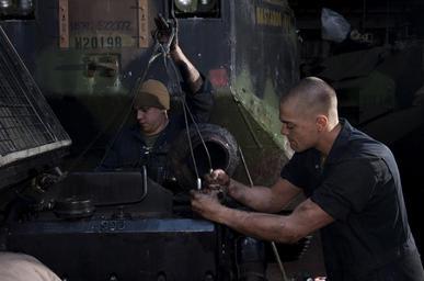 Keywords: US Navy 110406-N-QP268-162 Lance Cpl. Taylor Fenderson, right, and Lance Cpl. Chris Arbino hook lifting straps to a amphibious assault vehicle (AAV.jpg en ATLANTIC OCEAN April 6 2011 Lance Cpl Taylor Fenderson right from Hesperia Calif and Lance Cpl Chris Arbino from Cincinnati both assigned to the 22nd Marine Expeditionary Unit 22nd MEU embarked aboard the amphibious dock landing ship USS Whidbey Island LSD 41 hook lifting straps to a amphibious assault vehicle AAV Cummins VTA 903 T 525 diesel engine in the ship's well deck Whidbey Island is deployed to the Mediterranean Sea as part of the Bataan Amphibious Ready Group U S Navy photo by Mass Communication Specialist 1st Class Martin Cuaron/Released 2011-04-06 110406-N-QP268-162 Navy http //www navy mil/view_image asp id 99678 U S Navy photo by Mass Communication Specialist 1st Class Martin Cuaron PD-USGov-Military-Navy Aboard USS Whidbey Island LSD-41 Well decks Cummins VTA-903 |