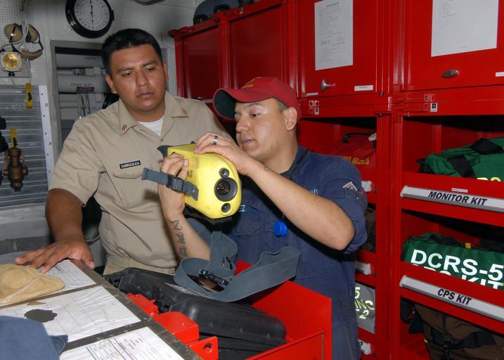 | Keywords: US Navy 110419-N-ZI300-116 Hull Technician Fireman Edward Lopez explains firefighting equipment and techniques to Mexican navy Lt. Roman Alfonso Sa.jpg en SALVADOR Brazil April 19 2011 Hull Technician Fireman Edward Lopez explains firefighting equipment and techniques to Mexican navy Lt Roman Alfonso Sarricolea aboard the guided-missile destroyer USS Nitze DDG 94 Sarricolea is aboard Nitze as a part of a service member exchange during the Atlantic phase of UNITAS 52 U S Navy photo by Mass Communication Specialist 1st Class Steve Smith/Released 2011-04-19 110419-N-ZI300-116 Navy http //www navy mil/view_image asp id 100147 U S Navy photo by Mass Communication Specialist 1st Class Steve Smith PD-USGov-Military-Navy Aboard USS Nitze DDG-94 Military of Mexico |