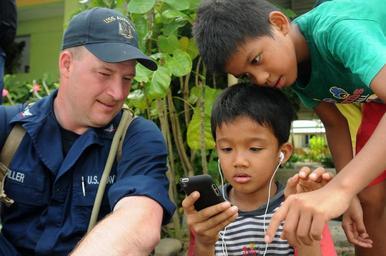 Keywords: US Navy 110506-N-SP676-176 Mineman 3rd Class Matt Miller gives children his smart phone to play with at the Bukit Harapan home for disabled and dis.jpg en KOTA KINABALU Malaysia May 6 2011 Mineman 3rd Class Matt Miller assigned to the mine and countermeasures ship USS Avenger MCM 1 gives children his smart phone to play with at the Bukit Harapan home for disabled and disadvantaged children in Kota Kinabalu U S Navy photo by Mass Communication Specialist 3rd Class Brian A Stone/Released 2011-05-06 110506-N-SP676-176 Navy http //www navy mil/view_image asp id 100664 U S Navy photo by Mass Communication Specialist 3rd Class Brian A Stone PD-USGov-Military-Navy USS Avenger MCM-1 Children of Malaysia |