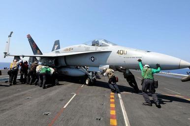 | Keywords: US Navy 110616-N-QL471-299 Sailors maneuver an F-A-18A Hornet aboard the aircraft carrier USS George H.W. Bush (CVN 77).jpg en MEDITERRANEAN SEA June 16 2011 Sailors maneuver an F/A-18A Hornet aboard the aircraft carrier USS George H W Bush CVN 77 George H W Bush is deployed in support of maritime security operations and theater security cooperation efforts in the U S 6th Fleet area of responsibility on its first overseas deployment U S Navy photo by Mass Communication Specialist 3rd Class Billy Ho/Released 2011-06-16 110616-N-QL471-299 Navy http //www navy mil/view_image asp id 102728 U S Navy photo by Mass Communication Specialist 3rd Class Billy Ho PD-USGov-Military-Navy Aboard USS George H W Bush CVN-77 |
