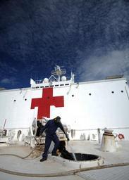 | Keywords: US Navy 110627-N-NY820-010 Civil service mariner Able Seaman Erwin Joiner cleans debris from the anchor chain as it is hoisted aboard the Military.jpg en SAN JUAN DEL SUR Nicaragua June 27 2011 Civil service mariner Able Seaman Erwin Joiner cleans debris from the anchor chain as it is hoisted aboard the Military Sealift Command hospital ship USNS Comfort T-AH 20 while preparing to depart San Juan del Sur during Continuing Promise 2011 Continuing Promise is a five-month humanitarian assistance mission to the Caribbean Central and South America U S Navy photo by Mass Communication Specialist 2nd Class Eric C Tretter/Released 2011-06-27 110627-N-NY820-010 Navy http //www navy mil/view_image asp id 103328 U S Navy photo by Mass Communication Specialist 2nd Class Eric C Tretter PD-USGov-Military-Navy Aboard USNS Comfort T-AH-20 |