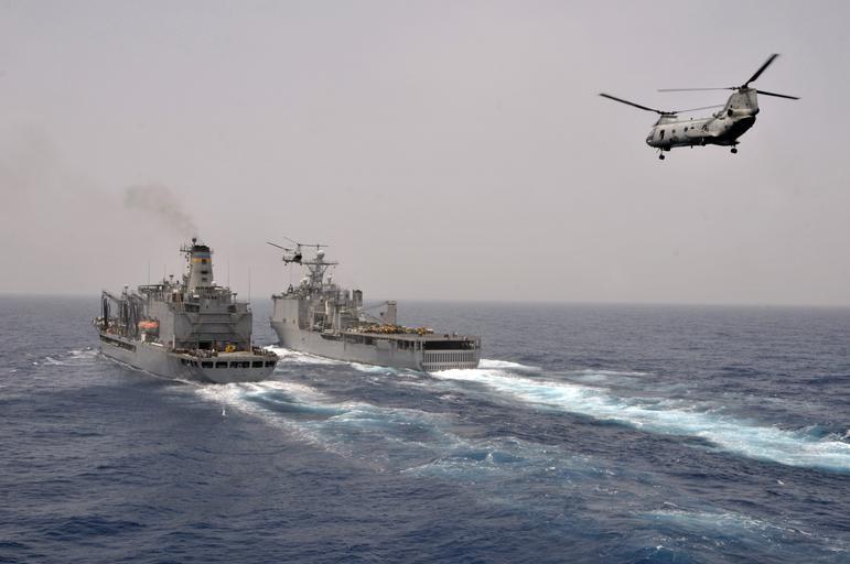 Keywords: US Navy 110709-N-GW695-104 CH-46 Sea Knight helicopters assigned to the Evil Eyes of Marine Medium Helicopter Squadron (HMM) 163 approach the Milit.jpg en GULF OF ADEN July 9 2011 CH-46 Sea Knight helicopters assigned to the Evil Eyes of Marine Medium Helicopter Squadron HMM 163 approach the Military Sealift Command fleet replenishment oiler USNS Leroy Grumman T-AO 195 left to transfer supplies to the amphibious dock landing ship USS Comstock LSD 45 during a replenishment at sea Comstock and the embarked 13th Marine Expeditionary Unit are underway supporting maritime security operations and theater security cooperation efforts in the U S 5th Fleet area of responsibility U S Navy photo by Mass Communication Specialist 3rd Class Stephen M Votaw/Released 2011-07-09 110709-N-GW695-104 Navy http //www navy mil/view_image asp id 104363 U S Navy photo by Mass Communication Specialist 3rd Class Stephen M Votaw PD-USGov-Military-Navy USNS Leroy Grumman T-AO-195 |
