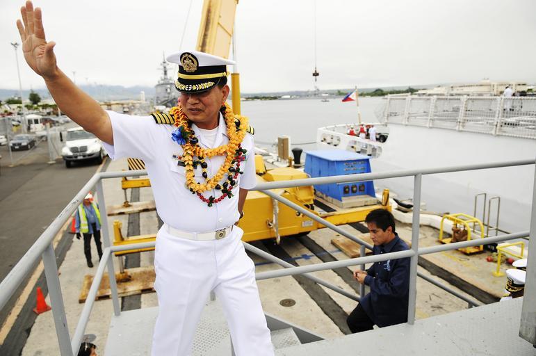 | Keywords: US Navy 110727-N-WP746-525 Members of the Hawaii Filipino community welcome Philippine navy Capt. Alberto Cruz, commanding officer of the Philippin.jpg en PEARL HARBOR July 27 2011 Philippine navy Capt Alberto Cruz commanding officer of the Philippine navy frigate BRP Gregorio del Pilar PF-15 invites guests to tour the ship Gregorio del Pilar a former U S Coast Guard cutter is en route to the Republic of the Philippines to join the Philippine navy fleet As a multi-mission surface combatant ship Gregorio del Pilar becomes the first gas turbine jet engine-powered vessel in the Philippine navy U S Navy photo by Mass Communication Specialist 2nd Class Mark Logico/Released 2011-07-27 110727-N-WP746-525 Navy http //www navy mil/view_image asp id 104931 U S Navy photo by Mass Communication Specialist 2nd Class Mark Logico PD-USGov-Military-Navy People at Pearl Harbor Images from US Navy location Pearl Harbor Hawaii 2011 in Pearl Harbor BRP Gregorio del Pilar PF-15 |