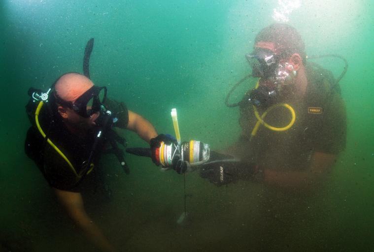 | Keywords: US Navy 110728-N-XD935-195 Able Body Seaman Raynaldo Farquharson, left, and Able Body Seaman Omar Albury find an inert training mine on the sea flo.jpg en PORT ROYAL Jamaica July 28 2011 Royal Bahamas Defense Force divers Able Body Seaman Raynaldo Farquharson left and Able Body Seaman Omar Albury find an inert training mine on the sea floor utilizing a circle search line during joint diving search operations with Mobile Diving and Salvage Unit MDSU 2 MDSU-2 is participating in Navy Diver-Southern Partnership Station a multinational partnership engagement designed to increase interoperability and partner nation capacity through diving operations U S Navy photo by Mass Communication Specialist 1st Class Jayme Pastoric/Released 2011-07-28 110728-N-XD935-195 Navy http //www navy mil/view_image asp id 105019 U S Navy photo by Mass Communication Specialist 1st Class Jayme Pastoric PD-USGov-Military-Navy Images from US Navy location Port Royal Jamaica Underwater photographs of scuba divers Military people of the Bahamas |