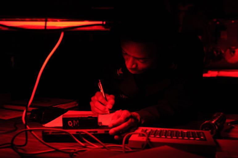 | Keywords: US Navy 110826-N-DU438-059 Quartermaster 3rd Class Lonnie Williams writes in the ship's deck log during a watch on the bridge aboard the guided-mis.jpg en GULF OF OMAN Aug 26 2011 Quartermaster 3rd Class Lonnie Williams writes in the ship's deck log during a watch on the bridge aboard the guided-missile cruiser USS Gettysburg CG 64 Gettysburg is deployed to the U S 5th Fleet area of responsibility conducting maritime security operations and support missions as part of Operations Enduring Freedom and New Dawn U S Navy photo by Mass Communication Specialist 3rd Class Betsy Knapper/Released 2011-08-26 110826-N-DU438-059 Navy http //www navy mil/view_image asp id 106446 U S Navy photo by Mass Communication Specialist 3rd Class Betsy Knapper PD-USGov-Military-Navy Aboard USS Gettysburg CG-64 |