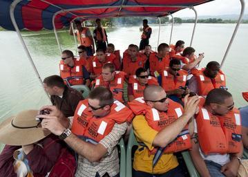 | Keywords: US Navy 110924-N-HA376-092 Sailors assigned to the mine countermeasures ship USS Defender (MCM 2) take pictures on Kaptai Lake during sightseeing t.jpg en DHAKA Bangladesh Sept 24 2011 Sailors assigned to the mine countermeasures ship USS Defender MCM 2 take pictures on Kaptai Lake during sightseeing tours hosted by the Bangladesh navy Defender is in Chittagong as part of Cooperation Afloat Readiness and Training CARAT Bangladesh 2011 CARAT is a series of bilateral exercises held annually in Southeast Asia to strengthen relationships and enhance force readiness Bangladesh is participating in this exercise for the first time U S Navy photo by Mass Communication Specialist 1st Class Lowell Whitman/Released 2011-09-24 110924-N-HA376-092 Navy http //www navy mil/view_image asp id 107755 U S Navy photo by Mass Communication Specialist 1st Class Lowell Whitman PD-USGov-Military-Navy USS Defender MCM-2 |
