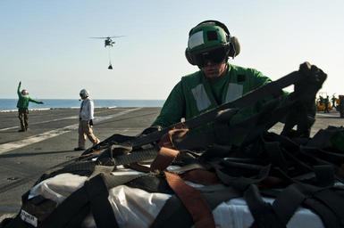 | Keywords: US Navy 111013-N-BT887-308 Logistics Specialist Seaman Robert Marlin unwraps cargo during a vertical replenishment aboard the Nimitz-class aircraft.jpg en ARABIAN SEA Oct 13 2011 Logistics Specialist Seaman Robert Marlin unwraps cargo during a vertical replenishment aboard the Nimitz-class aircraft carrier USS John C Stennis CVN 74 John C Stennis is deployed to the U S 5th Fleet area of responsibility conducting maritime security operations and support missions as part of Operations Enduring Freedom and New Dawn U S Navy photo by Mass Communication Specialist 3rd Class Benjamin Crossley/Released 2011-10-13 111013-N-BT887-308 Navy http //www navy mil/view_image asp id 108824 U S Navy photo by Mass Communication Specialist 3rd Class Benjamin Crossley PD-USGov-Military-Navy Aboard USS John C Stennis CVN-74 |