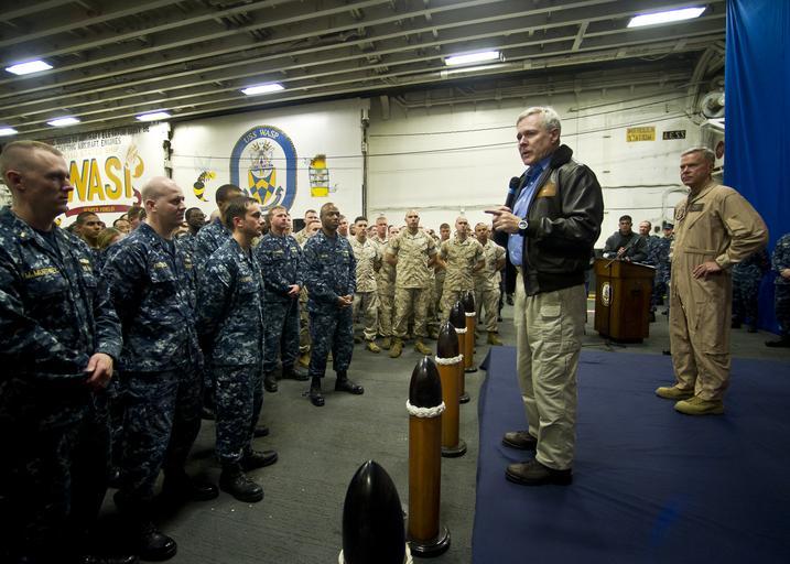 | Keywords: US Navy 111015-N-AC887-003 Secretary of the Navy (SECNAV) Ray Mabus speaks to Sailors and Marines during an all hands call aboard the amphibious as.jpg en ATLANTIC OCEAN Oct 15 2011 Secretary of the Navy SECNAV Ray Mabus speaks to Sailors and Marines during an all hands call aboard the amphibious assault ship USS Wasp LHA 1 Mabus and Commandant of the Marine Corps Gen James F Amos embarked aboard Wasp to get a first-hand look at the Marine Corps variant of the Joint Strike Fighter during sea trials U S Navy photo by Chief Mass Communication Specialist Sam Shavers/Released 2011-10-15 111015-N-AC887-003 Navy http //www navy mil/view_image asp id 108957 U S Navy photo by Chief Mass Communication Specialist Sam Shavers PD-USGov-Military-Navy Aboard USS Wasp LHD-1 Ray Mabus |