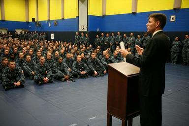 | Keywords: US Navy 111025-N-YM440-175 Asstistant Secretary of the Navy Juan Garcia speaks to students at the Master-at-Arms school at Navy Technical Training.jpg en LACKLAND AIR FORCE BASE Texas Oct 25 2011 Asstistant Secretary of the Navy Juan Garcia speaks to students at the Master-at-Arms school at Navy Technical Training Center during San Antonio Navy Week Navy weeks are intended to show the investment Americans have made in their Navy and increase awareness in cities that do not have a significant Navy presence U S Navy photo by Senior Chief Mass Communication Specialist Gary Ward/Released 2011-10-25 111025-N-YM440-175 Navy http //www navy mil/view_image asp id 109485 U S Navy photo by Senior Chief Mass Communication Specialist Gary Ward PD-USGov-Military-Navy Images from US Navy location LACKLAND AIR FORCE BASE Texas San Antonio Navy Week |