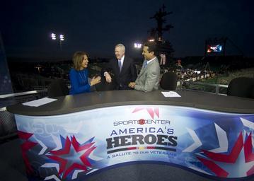 | Keywords: US Navy 111110-N-AC887-003 Secretary of the Navy (SECNAV) the Honorable Ray Mabus shares a laugh with ESPN SportsCenter anchors Hannah Storm and Ke.jpg en SAN DEIGO Nov 10 2011 Secretary of the Navy SECNAV the Honorable Ray Mabus shares a laugh with ESPN SportsCenter anchors Hannah Storm and Kevin Negandhi aboard the Nimitz-class aircraft carrier USS Carl Vinson CVN 70 Mabus thank them for their support with of the Carrier Classic basketball game between the NCAA Division I top-ranked North Carolina Tar Heels and the Spartans from Michigan State University U S Navy photo by Chief Mass Communication Specialist Sam Shavers/Released 2011-11-10 111110-N-AC887-003 Navy http //www navy mil/view_image asp id 110318 U S Navy photo by Chief Mass Communication Specialist Sam Shavers PD-USGov-Military-Navy Aboard USS Carl Vinson CVN-70 ESPN Ray Mabus Hannah Storm |
