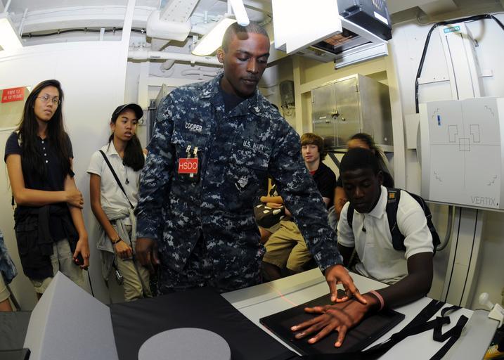 | Keywords: US Navy 111117-N-BK435-010 Hospital Corpsman 2nd Class Andre Cooper demonstrates to the students from Guam High School's Health Team Dynamic's clas.jpg en POLARIS POINT Guam Oct 17 2011 Hospital Corpsman 2nd Class Andre Cooper assigned to the submarine tender USS Frank Cable AS 40 demonstrates to the students from Guam High School's Health Team Dynamic's class how to take a hand x-ray Frank Cable conducts maintenance and support of submarines and surface vessels deployed in the U S 7th Fleet area of responsibility U S Navy photo by Mass Communication Specialist 2nd Class Jeremy Starr/Released 2011-10-17 111117-N-BK435-010 Navy http //www navy mil/view_image asp id 110546 U S Navy photo by Mass Communication Specialist 2nd Class Jeremy Starr PD-USGov-Military-Navy Aboard USS Frank Cable AS-40 |