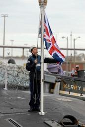 Keywords: US Navy 111128-N-NK458-092 A sailor assigned to the Royal Navy submarine HMS Astute (S119) prepares to raise the flag as the ship arrives at Naval.jpg en NORFOLK Nov 28 2011 A sailor assigned to the Royal Navy submarine HMS Astute S119 prepares to raise the flag as the ship arrives at Naval Station Norfolk Astute is the first in a new class of British nuclear submarines that sets the standard for the Royal Navy in terms of weapons load communication facilities and stealth Commissioned on Aug 27 2010 the 323-foot 7 400-ton submarine carries a crew of 98 officers and enlisted personnel and can travel at speeds of 29-plus knots while submerged U S Navy photo by Mass Communication Specialist 1st Class Todd A Schaffer/Released 2011-11-28 111128-N-NK458-092 Navy http //www navy mil/view_image asp id 111073 U S Navy photo by Mass Communication Specialist 1st Class Todd A Schaffer PD-USGov-Military-Navy Naval Station Norfolk Photographs of the Union flag Flag hoisting |