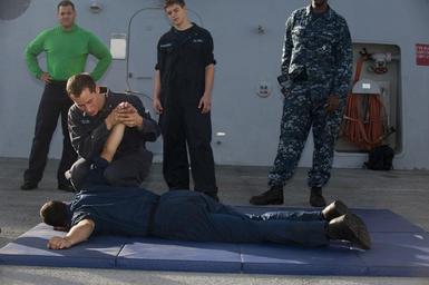 | Keywords: US Navy 111201-N-PB383-425 Hull Technician Fireman Nicholas Ardoin puts Engineman 3rd Class Phillip Nieves into an arm restraint during a self-defe.jpg en PACIFIC OCEAN Dec 1 2011 Hull Technician Fireman Nicholas Ardoin puts Engineman 3rd Class Phillip Nieves into an arm restraint during a self-defense course aboard the amphibious transport dock ship USS New Orleans LPD 18 New Orleans and embarked Marines assigned to the 11th Marine Expeditionary Unit 11th MEU are conducting operations in the U S 7th Fleet area of responsibility as part of the Makin Island Amphibious Ready Group U S Navy photo by Mass Communication Specialist 2nd Class Dominique Pineiro/Released 2011-12-01 111201-N-PB383-425 Navy http //www navy mil/view_image asp id 111271 U S Navy photo by Mass Communication Specialist 2nd Class Dominique Pineiro PD-USGov-Military-Navy Aboard USS New Orleans LPD-18 |