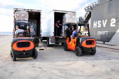 | Keywords: US Navy 111214-A-TF780-112 Donated goods for Project Handclasp are loaded onto trucks next to High Speed Vessel (HSV 2) Swift as part of Southern P.jpg en LA UNION El Salvador Dec 14 2011 Donated goods for Project Handclasp are loaded onto trucks next to High Speed Vessel HSV 2 Swift as part of Southern Partnership Station 2012 The goods consisted of medical supplies and food which will be distributed throughout the country Southern Partnership Station is an annual deployment of U S ships to the U S Southern Command area of responsibility in the Caribbean Central and South America U S Army photo by Sgt 1st Class Alan B Owens/Released 2011-12-14 111214-A-TF780-112 Navy http //www navy mil/view_image asp id 112260 U S Army photo by Sgt 1st Class Alan B Owens PD-USGov-Military-Navy Forklift trucks La Union El Salvador Forklifts in El Salvador Ships in El Salvador Trucks in El Salvador Ports and harbours in El Salvador HSV-2 Swift in El Salvador 2011 Images from US Navy location La Union El Salvador Box rigid trucks Project Handclasp United States Navy |
