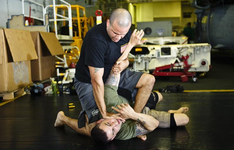 Keywords: US Navy 120102-N-GC412-128 Sailors practice mixed martial arts in the hangar bay.jpg en ARABIAN SEA Jan 2 2012 Chief Information Systems Technician Wilfredo Casillas and Senior Chief Damage Controlman Steven Quick practice mixed martial arts in the hangar bay aboard the Nimitz-class aircraft carrier USS John C Stennis CVN 74 John C Stennis is deployed to the U S 5th Fleet area of responsibility conducting maritime security operations and support missions as part of Operation Enduring Freedom U S Navy photo by Mass Communication Specialist 3rd Class Will Tyndall/Released 2012-01-02 120102-N-GC412-128 Navy http //www navy mil/view_image asp id 112959 U S Navy photo by Mass Communication Specialist 3rd Class Will Tyndall PD-USGov-Military-Navy Aboard USS John C Stennis CVN-74 |