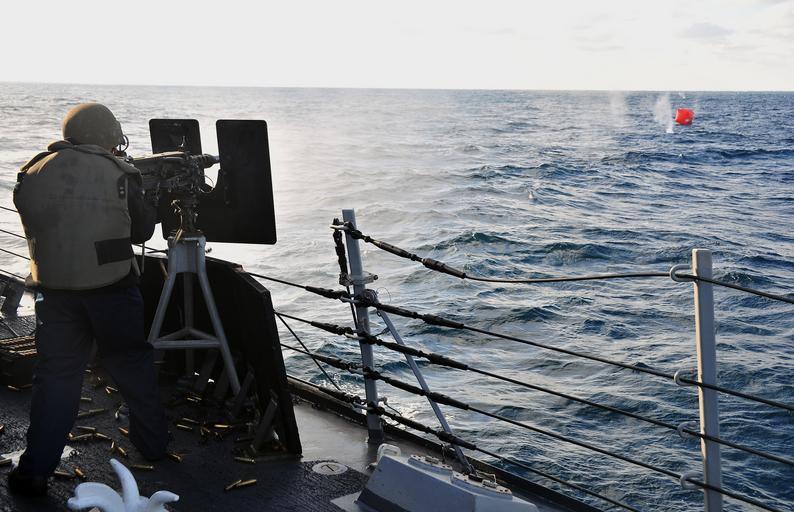| Keywords: US Navy 120114-N-OP638-009 A Sailor practices shooting during a live-fire exercise.jpg en ATLANTIC OCEAN Jan 14 2012 Gunner's Mate 2nd Class Christina Marsh fires a 50-caliber machine gun at the killer tomato' a large inflatable device used for target practice during a live-fire exercise aboard the Arleigh Burke-class guided-missile destroyer USS Porter DDG 78 Porter is part of the Enterprise Carrier Strike Group which is underway conducting a composite training unit exercise U S Navy photo by Mass Communication Specialist 3rd Class Jesse L Gonzalez/Released 2012-01-14 120114-N-OP638-009 Navy http //www navy mil/view_image asp id 113552 U S Navy photo by Mass Communication Specialist 3rd Class Jesse L Gonzalez PD-USGov-Military-Navy USS Porter DDG-78 Killer tomatoes Browning M2 of the US Navy |