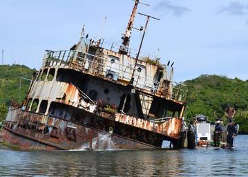 Keywords: US Navy 120125-N-XX999-018 embarked aboard the rescue and salvage ship USNS Safeguard (T-ARS 50) check on progress of water being pumped from the e.jpg en YAP Federated States of Micronesia Jan 25 2012 Navy divers assigned to Mobile Dive and Salvage Unit MDSU 1 Company 17 embarked aboard the rescue and salvage ship USNS Safeguard T-ARS 50 check on progress of water being pumped from the engine room of the abandoned Merchant Vessel Cecilia Cecilia has blocked the harbor in Yap since running aground during a storm in 1997 and is being refloated and cleared at the request of the local government U S Navy photo by Master Diver Jon Klukas/Released 2012-01-25 120125-N-XX999-018 Navy http //www navy mil/view_image asp id 114140 U S Navy photo by Master Diver Jon Klukas PD-USGov-Military-Navy Aboard USNS Safeguard T-ARS-50 Abandoned ships |