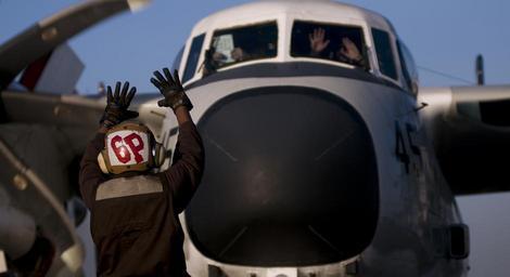 Keywords: US Navy 120126-N-TZ605-182 A Sailor signals to the pilots of a C-2A Greyhound assigned to Fleet Logistics Support Squadron (VRC) 40 during startup.jpg en ARABIAN SEA Jan 26 2012 Aviation Machinist's Mate 3rd Class LaTasha Lawrence a plane captain assigned to Carrier Airborne Early Warning Squadron VAW 125 signals to the pilots of a C-2A Greyhound assigned to Fleet Logistics Support Squadron VRC 40 during startup procedures on the flight deck aboard the Nimitz-class aircraft carrier USS Carl Vinson CVN 70 Carl Vinson and Carrier Air Wing CVW 17 are deployed to the U S 5th Fleet area of responsibility U S Navy photo by Mass Communication Specialist 3rd Class Timothy A Hazel/Released 2012-01-26 120126-N-TZ605-182 Navy http //www navy mil/view_image asp id 114175 U S Navy photo by Mass Communication Specialist 3rd Class Timothy A Hazel PD-USGov-Military-Navy Aboard USS Carl Vinson CVN-70 Grumman C-2 Greyhound Fleet Logistics Support Squadron 40 United States Navy |