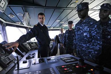Keywords: US Navy 120202-N-IZ292-154 Royal Moroccan Naval Ensign Nabil Elkorchi gives a briefing to Sailors from the guided-missile frigate USS Simpson (FFG.jpg en CASABLANCA Morocco Feb 2 2012 Royal Moroccan Naval Ensign Nabil Elkorchi gives a briefing to Sailors from the guided-missile frigate USS Simpson FFG 56 during a tour of the bridge on the Royal Moroccan Navy vessel Tarek Ben Zayid Simpson homeported in Mayport Fla is conducting theater security cooperation and maritime security operations in the U S Naval Forces Africa area of responsibility U S Navy photo by Mass Communication Specialist 2nd Class Felicito Rustique/Released 2012-02-02 120202-N-IZ292-154 Navy http //www navy mil/view_image asp id 114824 U S Navy photo by Mass Communication Specialist 2nd Class Felicito Rustique PD-USGov-Military-Navy Aboard USS Simpson FFG-56 |
