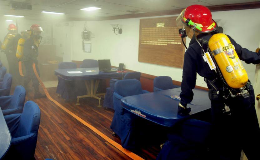 | Keywords: US Navy 120203-N-RN782-475 A Sailor relays instructions during a firefighting training drill.jpg en BLACK SEA Feb 3 2012 Sailors aboard the guided-missile cruiser USS Vella Gulf CG 72 relay instructions during a firefighting training drill Vella Gulf is conducting theater security cooperation and maritime security operations in the U S 6th Fleet area of responsibility U S Navy photo by Mass Communication Specialist Seaman Brian Glunt/Released 2012-02-03 120203-N-RN782-475 Navy http //www navy mil/view_image asp id 115057 U S Navy photo by Mass Communication Specialist Seaman Brian Glunt PD-USGov-Military-Navy USS Vella Gulf CG-72 |